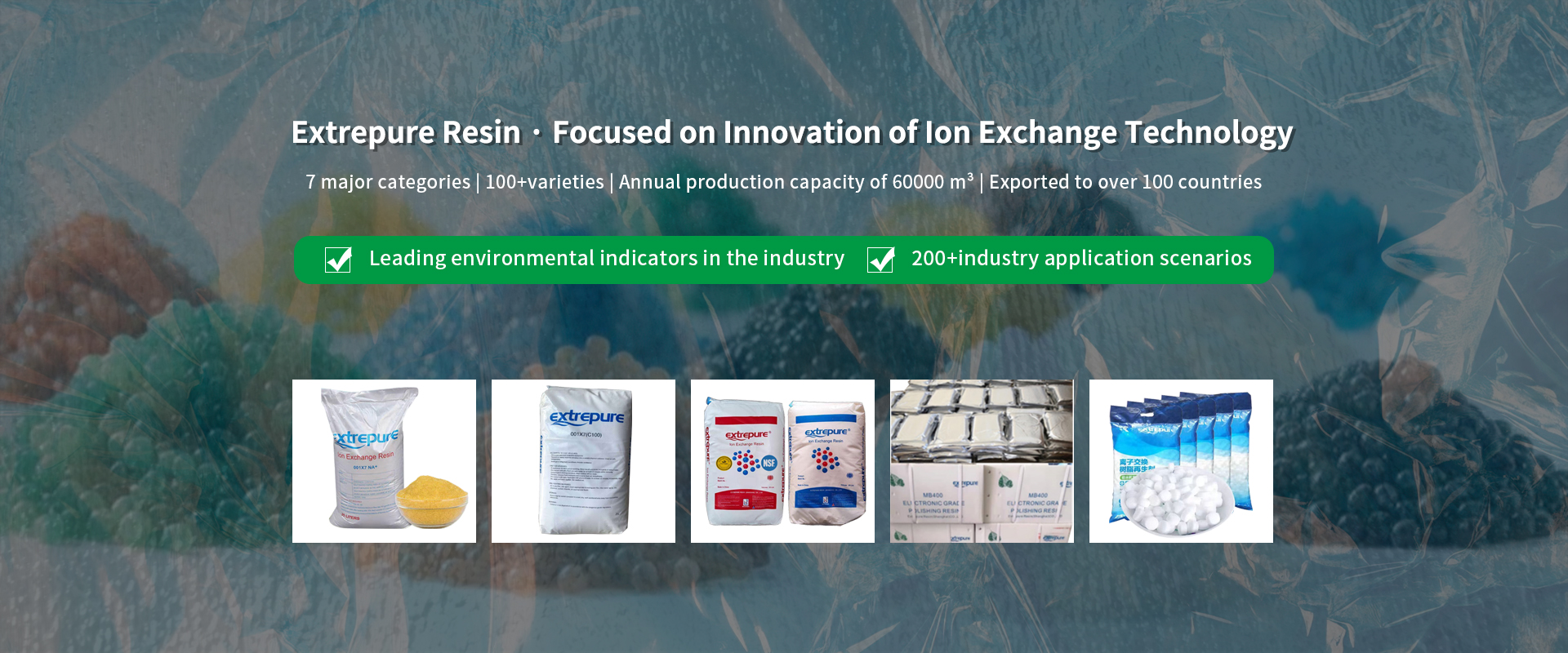Extrepure Resin (Shanghai) Co., Ltd. is a company specializing in ion exchange resins and water treatment pressure vessels. The main products include six categories of strong acid, strong base, weak acid, weak base, chelating, polishing ion exchange resins with more than 100 varieties, various macroporous adsorption resins with more than 30 varieties, and an annual production capacity of 60,000 cubic meters. The products are widely used in power, electronics, nuclear energy, petroleum, chemical, light industry, medicine, food, beverage, metallurgy, environmental protection and other industries. Food-grade series resins are widely used in civilian water dispensers, water softeners and other industries. Polishing resin series are widely used in many fields such as industrial pure water and electronic grade ultrapure water preparation, food, medicine and biochemistry. Products are exported to North America, South America, Europe, Russia, Africa and Southeast Asian countries and regions.