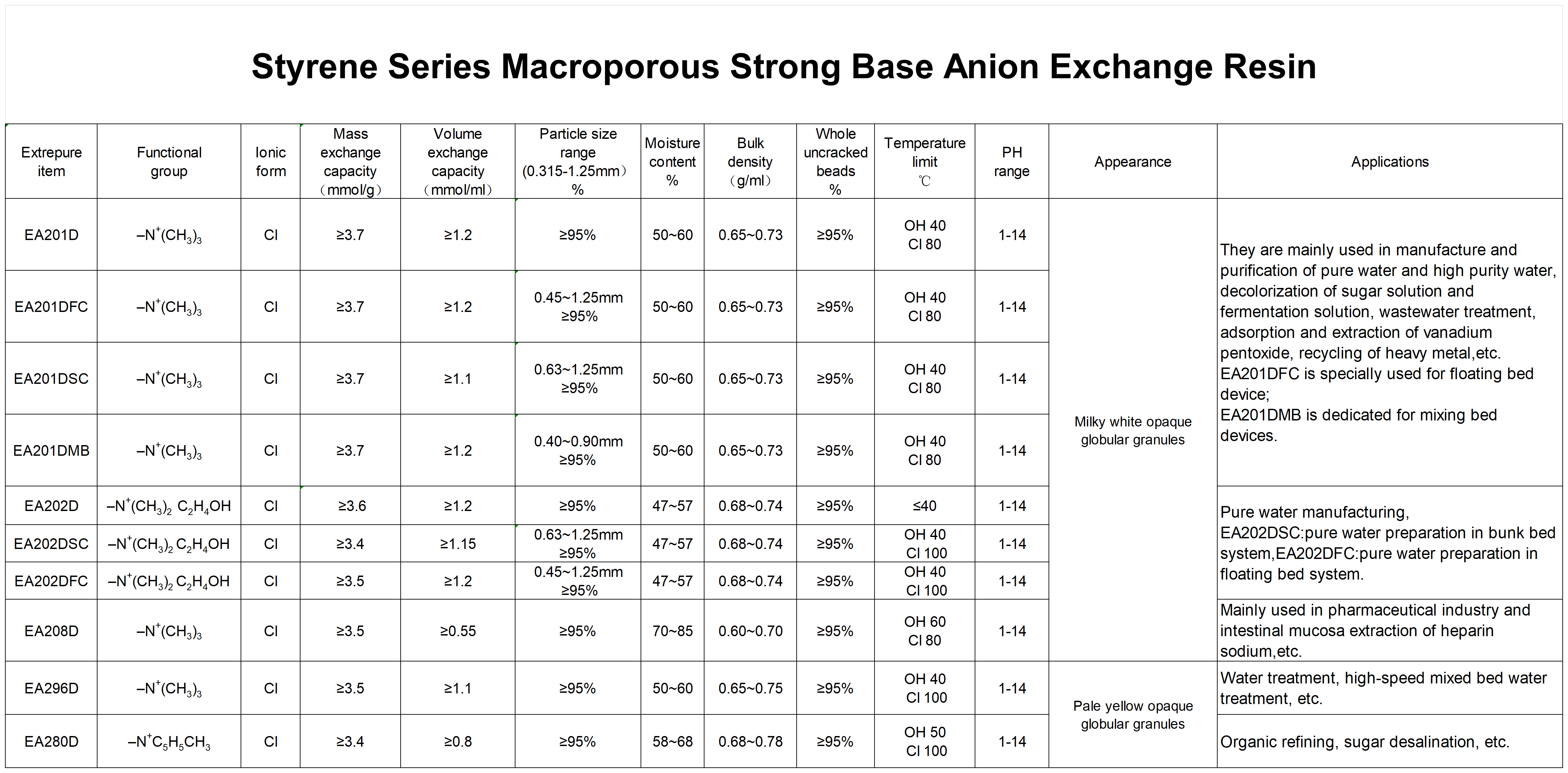 Styrene Series Macroporous Strong Base Anion Exchange Resin