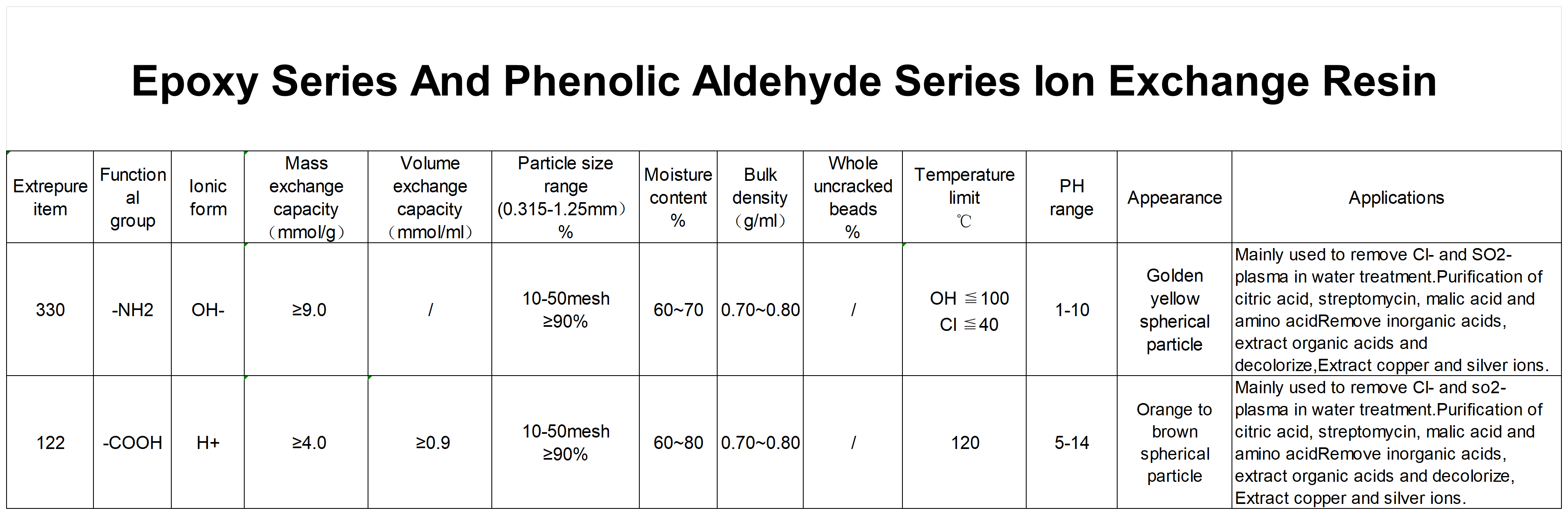 Epoxy Series And Phenolic Aldehyde Series lon Exchange Resin